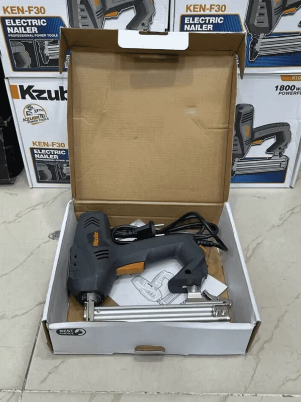 میخکوب برقی 1800 وات زوبر مدل KEN-f30 میخ کوب برقی زوبر یکی از ابزارهای بینظیر در دنیای صنعت و ساختمانی است که با ویژگیها و امکانات منحصر به فرد خود، عملکرد عالی را در کارهای میخ کوبی ارائه میدهد. در ابتدا، این میخ کوب برقی دارای ولتاژ 220 ولت و توان 1800 وات میباشد که قدرت و عملکرد بینظیری در اختیار شما قرار می دهد. با این میخ کوب برقی، میتوانید به راحتی میخهای با اندازههای مختلف از 10 تا 30 میلیمتر را کوبیده و کارهای میخ کوبی را با دقت بالا انجام دهید.این محصول به عنوان یک ابزار صنعتی و پر قدرت توسط صنعتگران و کارگران حرفهای بسیار مورد استفاده قرار میگیرد. با ظرفیت خشاب 100 عدد، شما میتوانید به راحتی میخهای خشاب خود را در اختیار داشته باشید و نیاز به تعویض مکرر میخها را کاهش دهید. یکی از ویژگیهای ایمنی این میخ کوب برقی، وجود کلید قطع کن امنیتی است که در مواقع اضطراری و برای جلوگیری از حوادث غیرمنتظره میتواند بسیار مفید باشد.همچنین، میخ کوب برقی زوبر مجهز به دور متغییر با قابلیت تنظیم قدرت میخ است که با استفاده از دیمر، میتوانید قدرت میخ کوبی را به تطبیق با نوع میخ و نیاز خود تنظیم کنید. با میخ کوب برقی زوبر، میتوانید در پروژههای مختلف از جمله ساختمانی، عمرانی و صنعتی از عملکرد بینظیر آن بهرهبرداری کرده و کارهای میخ کوبی را با سرعت و دقت بالا انجام دهید.m و a.a